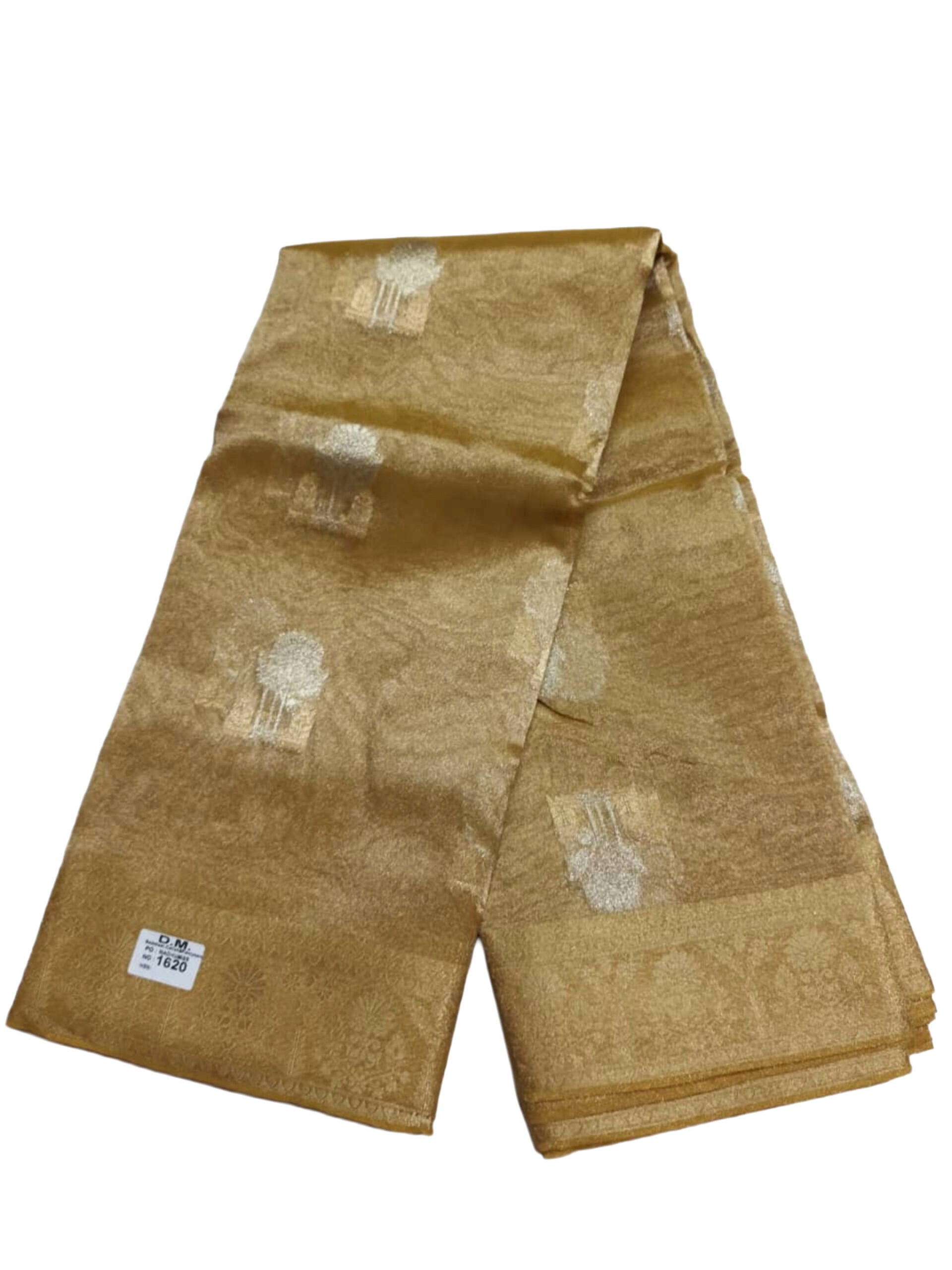 Premium Silk Tissue Saree – Golden with Circular Motif Design