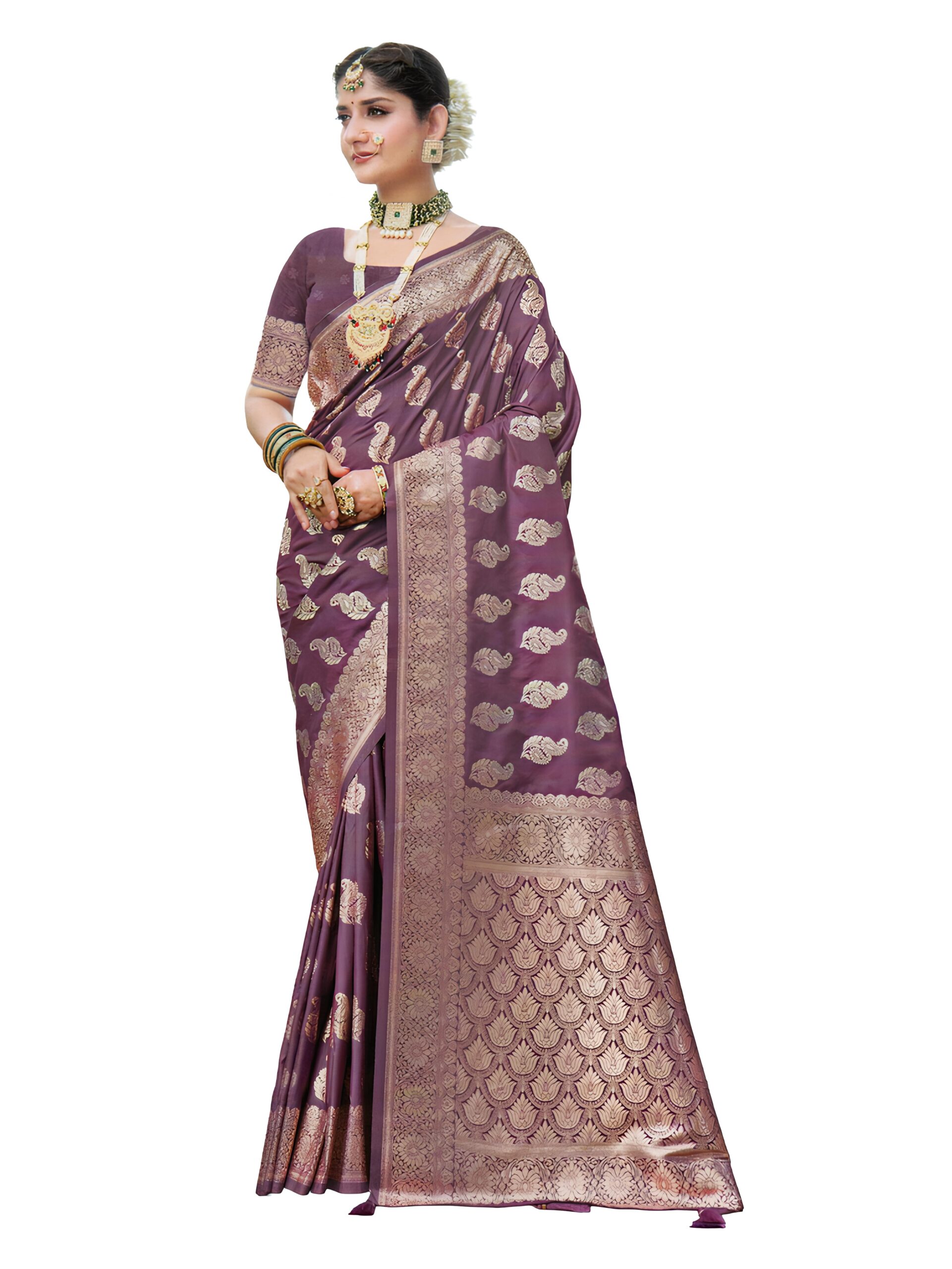 Women’s Banarasi Silk Jaal Katan Zari Work Dual Tone Saree With Blouse Piece – Purple